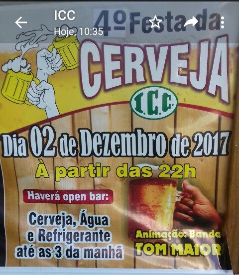 No dia 02 de Dezembro o ICC promove a 4ª Festa da Cerveja. O evento acontecerá a partir da 22hs e terá a animação da banda Tom Maior. Na ocasião haverá Open Bar : onde será servido cerveja, água e refrigerante até as 3horas da manhã. O valor do ingresso é R$50,00 para sócio e […]